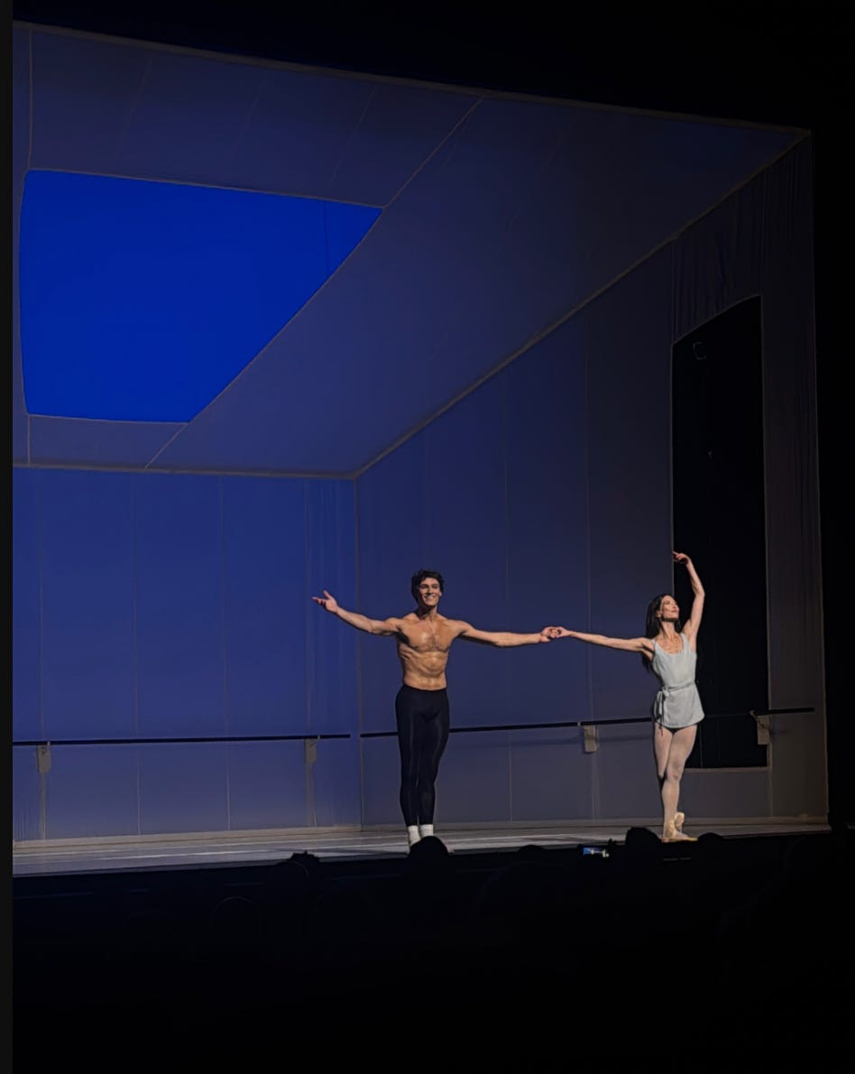 Western Symphony in particular kept us on the edge of our seats, as each lead couple was composed of debuting dancers. Alec Knight—containing elegance with command—burst onto the stage with the exacting and charismatic Alexa Maxwell in a river of joy. Olivia MacKinnon, Victor Abreu, Isabella LaFreniere, and Ryan Tomash alternated between the raucous, the hilarious, and the dazzling. More on the history and poignantly layered staging of this ballet in Wednesday’s upcoming drop.