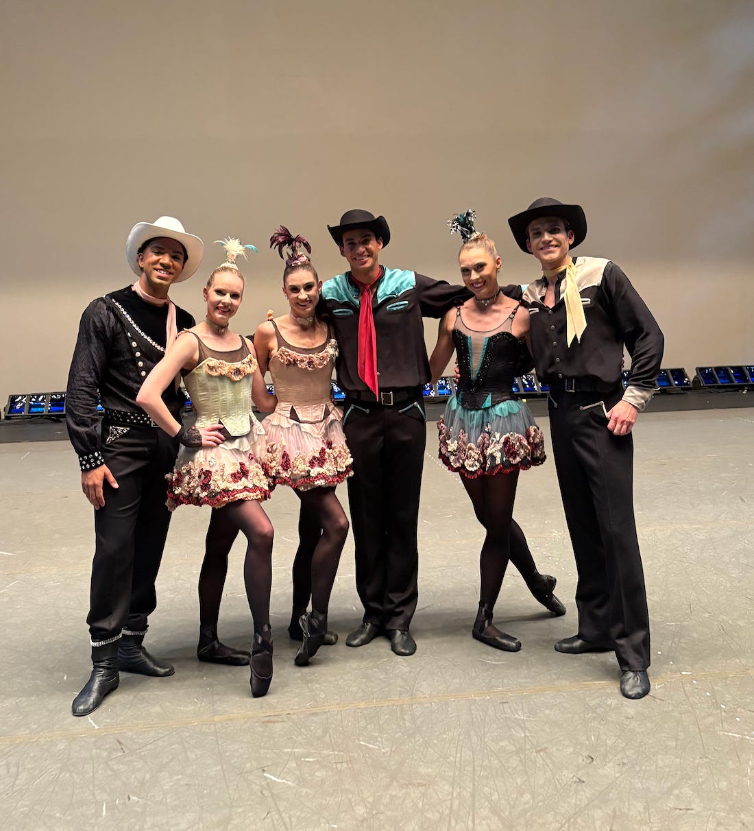 Left to right: Ryan Tomash, Olivia MacKinnon, Alexa Maxwell, Victor Abreu, Isabella LaFreniere, Alec Knight in costume for ‘Western Symphony’